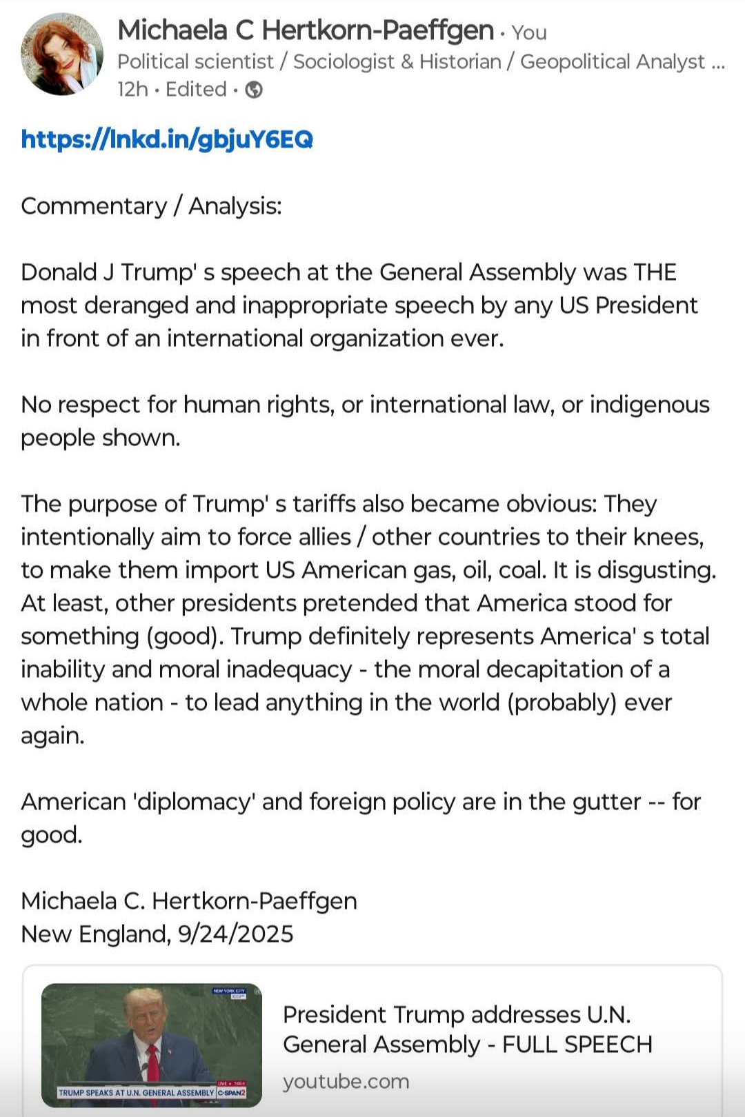 US American Decline on Full Display, United Nations, September 2025 - Analysis. Apr 18 Written By Michaela C Hertkorn-Paeffgen Michaela C Hertkorn-Paeffgen